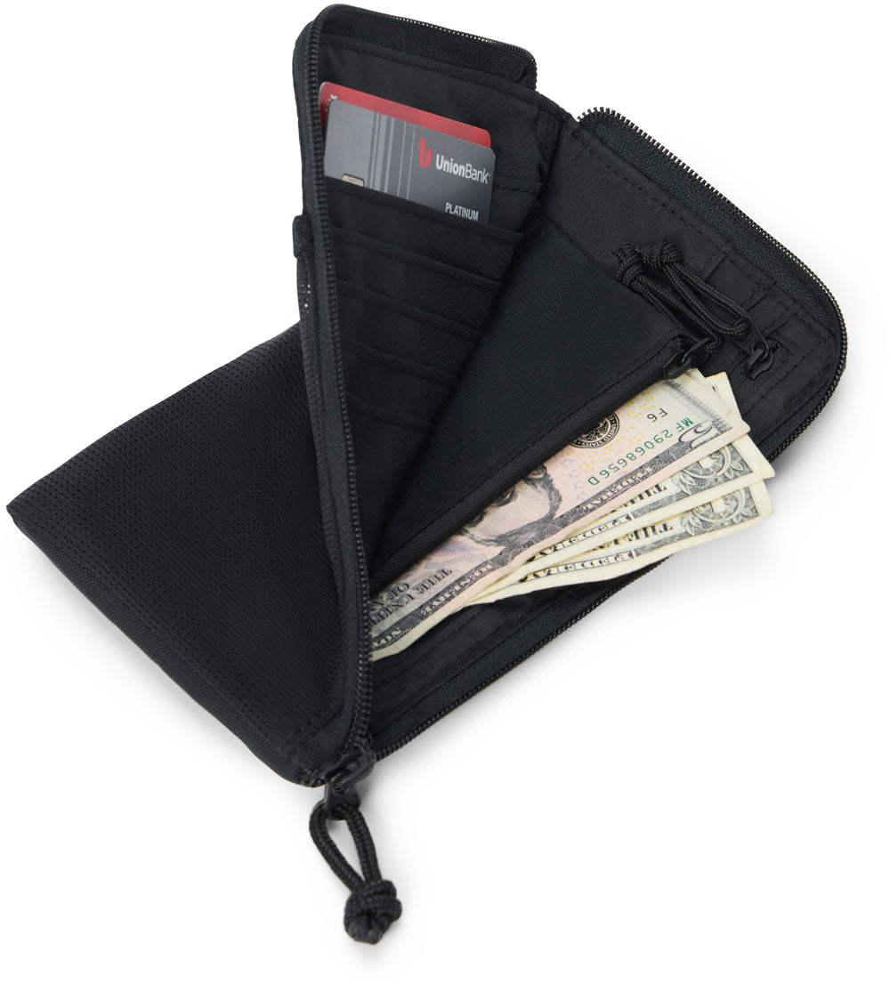 - Zippered main compartment with passport pocket